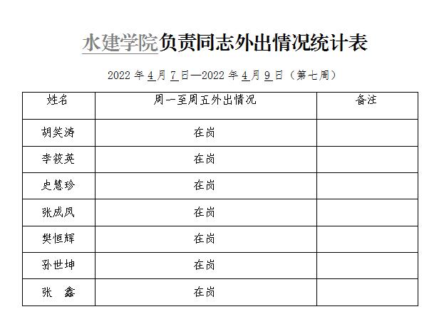 » 水建学院负责同志外出情况统计表(第七周)