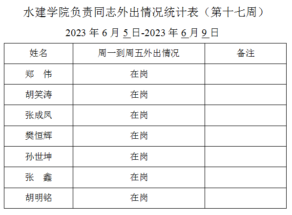 » 水建学院负责同志外出情况统计表(第十七周)