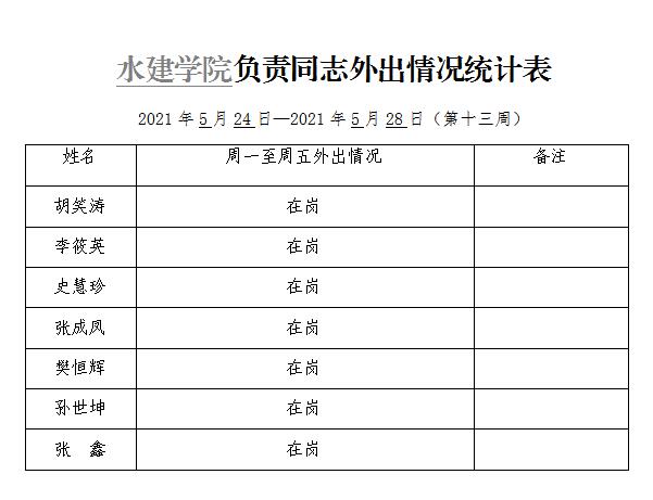 » 水建学院负责同志外出情况统计表(第十三周)