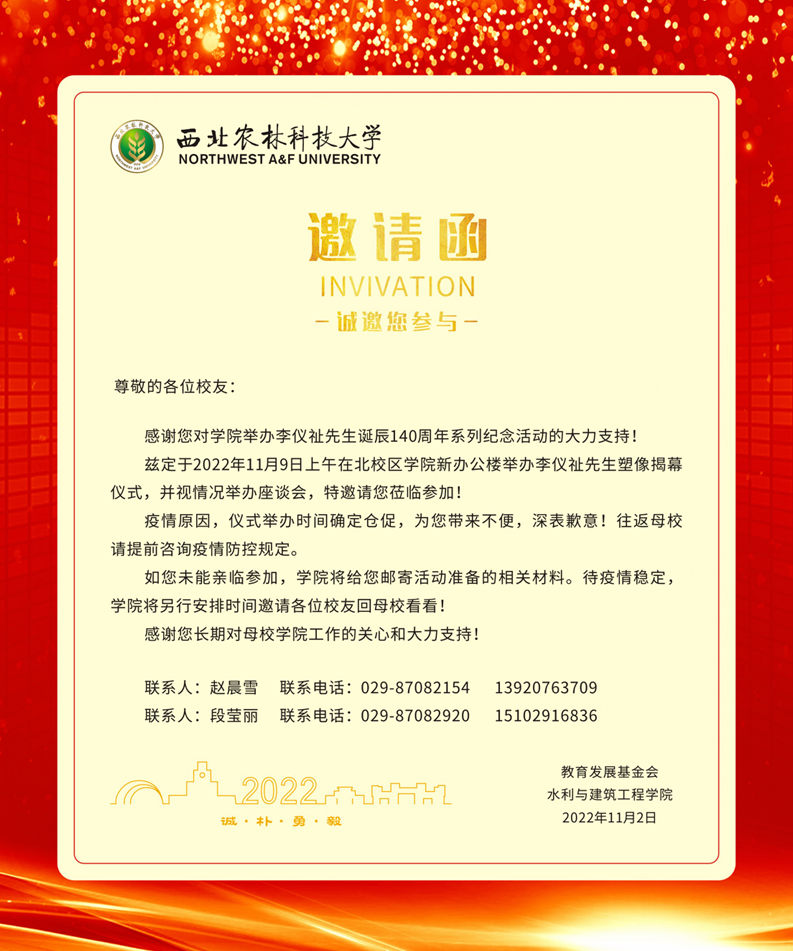 2022年是李仪祉先生诞辰140周年。在这特殊的日子里,学校定于11月8日—9日举行纪念李仪祉诞辰140周年暨农业水土过程与资源高效利用国际研讨会。