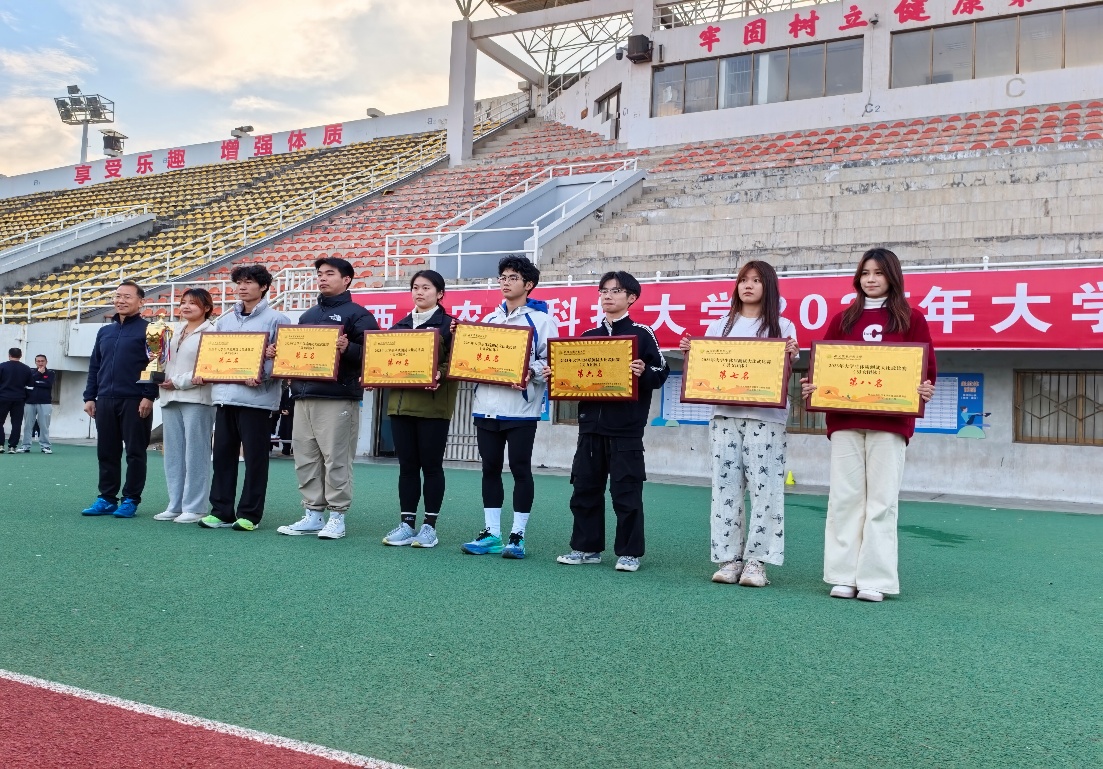 本次体测大比武由校体育运动委员会和体育部主办,设置50米短跑、1000米/800米长跑、立定跳远、引体向上/仰卧起坐等4个项目。上午进行了50米短跑、立定跳远、引体向上/仰卧起坐等3个项目的比拼,下午进行了1000米/800米长跑项目的比拼。赛场上,运动员们奋勇拼搏,全力以赴,突破自我。赛场周边,我院师生组成后勤保障团队,为参赛学子呐喊助威。我院工作人员及时服务选手,为运动员们提供坚实支持。