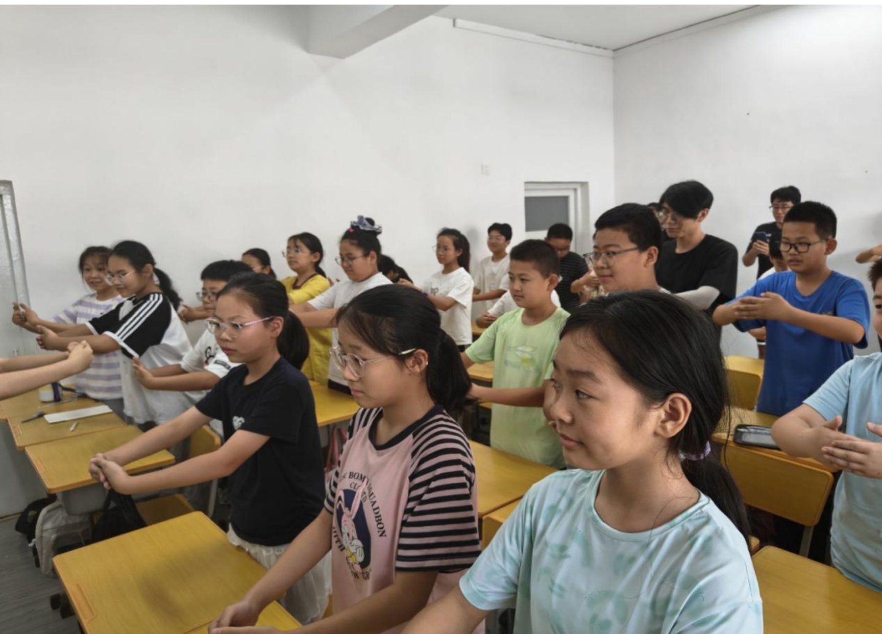 第三站,实践队在壹点通教育机构,以“讲、学、做”模式传播儒家文化。队员讲述了子路负米、孔融让梨等故事,解读“孝”“谦让”“仁”“礼”内涵,并开展了行揖礼、学书法,邀请学生一展歌喉等活动。通过体验“六艺”,学生在实践中学习传统文化,为儒家文化的延续与发展注入新的活力。