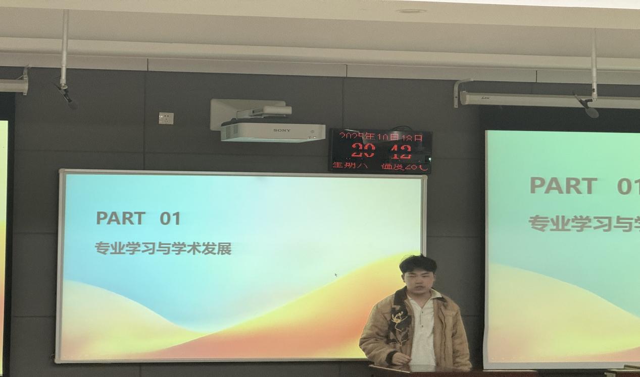 活动伊始,矫开智学长深入浅出地为同学们讲解了活动内容和重要意义。接下来,23级的董杰可、黄启韬和石金山同学轮番上台为新生们分享学习经验,并为同学们答疑解惑,从课程组成到学习方法,从努力方向到未来选择,从专业学习到学术发展,三位同学用朴实易懂和幽默风趣的语言,以亲身经历与自身经验为同学们讲述大学学习的方方面面,给出自己的建议,让同学们深受启发。
