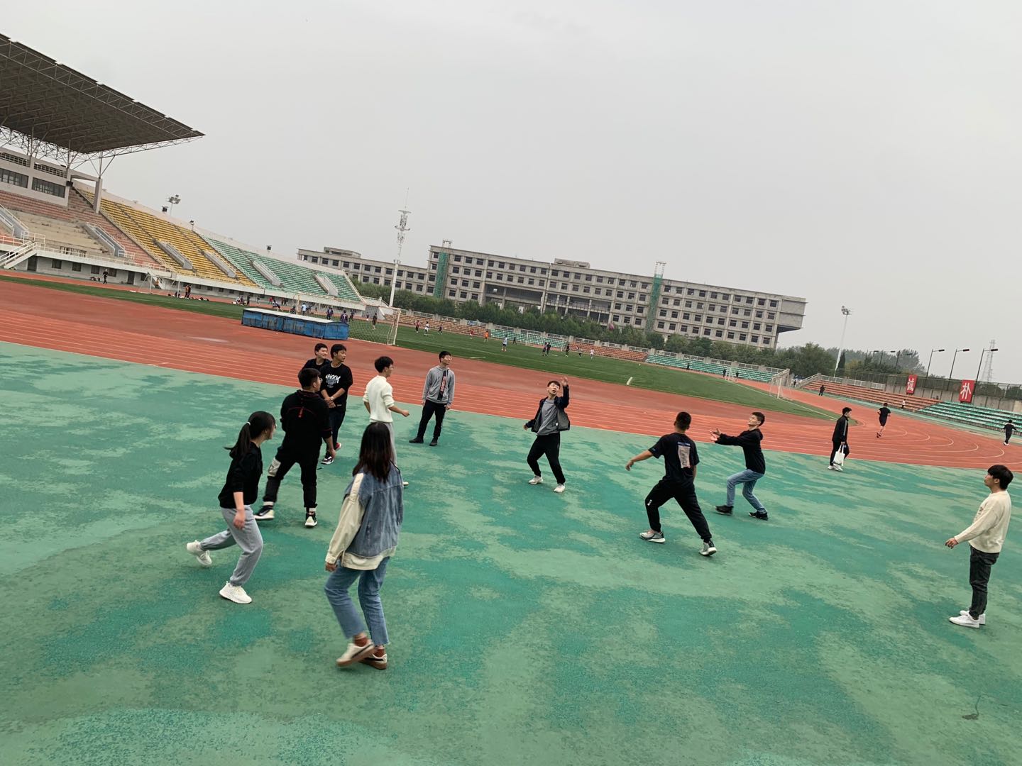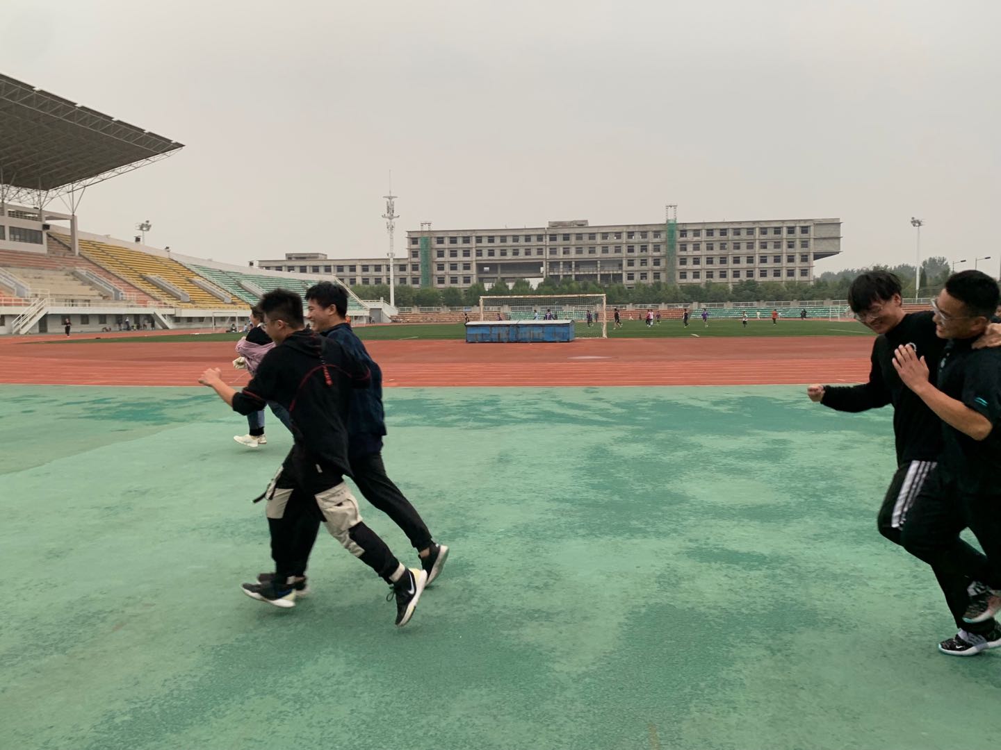 社团指导老师毛秀丽老师积极调动气氛,参赛同学热情高涨。短短几个小时的活动中,砸沙包,两人三足,套圈,袋鼠跳等项目进行得如火如荼,掌声,笑声此起彼伏,一片青春洋溢、欢乐祥和的气氛。在两人三足这个特别讲究队员互相配合的游戏中,队员背靠背夹球跑,比的既有速度,又有技巧,这对参赛队员的综合能力提出了很高的要求,而扔沙包不仅要快,而且要稳。