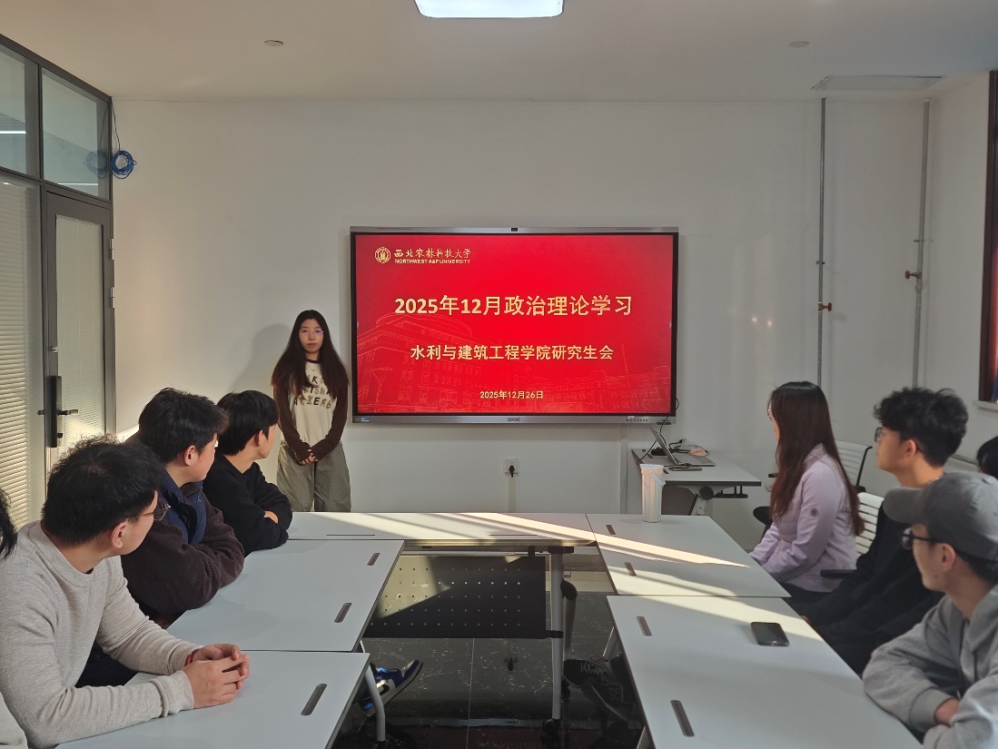 为深入学习贯彻习近平总书记关于加强网络生态治理的重要讲话精神,引导研究生群体树立正确网络观、践行青年责任担当,12月26日,西北农林科技大学水利与建筑工程学院研究生会在学院B座五楼研讨室组织开展专题政治理论学习活动。本次学习主题为“健全网络生态治理长效机制持续营造风清气正的网络空间”。