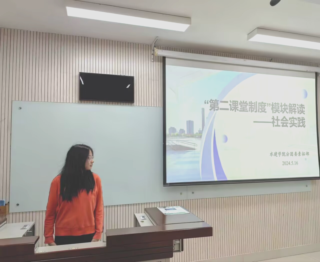 为加深24级新生对第二课堂制度不同模块的理解,a小说 素拓部于2024年5月16日对新生组织了一次宣讲活动。此次由素拓部成员康诗渝为同学们介绍模块之一——社会实践。