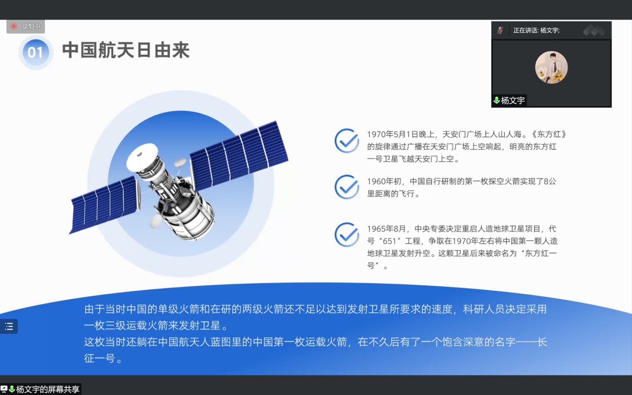 本次线上航天事业宣讲活动向同学们普及了中国航天事业的知识,助力夯实培养全方面高素质发展人才的基础,拓宽了同学们的知识面,大家收获颇丰,此次活动也取得圆满成功。