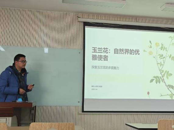 本次活动中,参赛队伍通过PPT的形式,从生动展示植物的形态之美,到深入探讨植物背后的文化寓意,最终让大家领略到植物在人类精神世界的独特地位。现场的观众频频发出赞叹,他们不仅感受到玉兰花的魅力,更深入了解槐树等传统树木的生态价值。