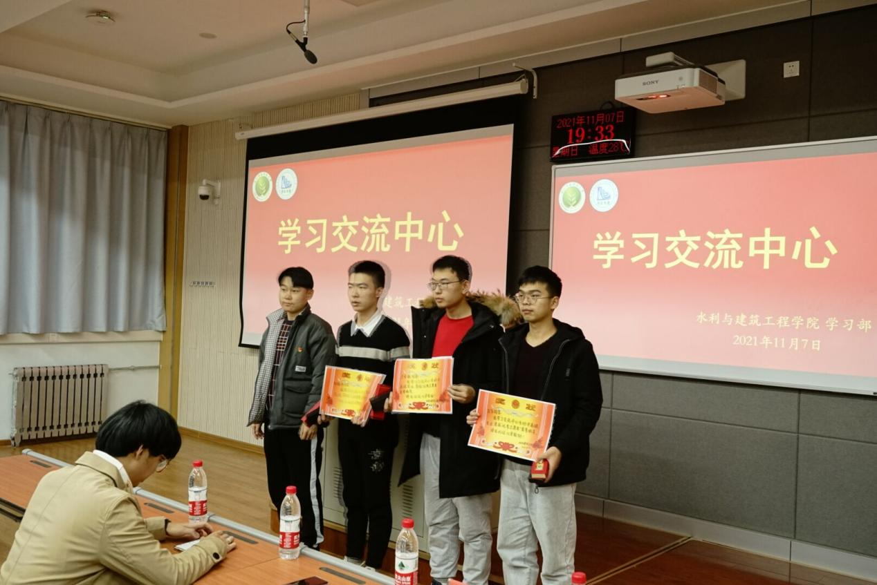 11月7日晚,水建学院学习部举办学习交流中心颁奖仪式暨启动仪式,21级辅导员郝彦昕老师、主席团团委副书记杨文宇和19级优秀学生马越洋、王飞、兰安栋出席此次活动,同20级和21级学生进行学习交流。