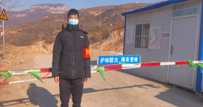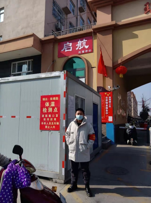 图 田苗朔同学在疫情防控点值班