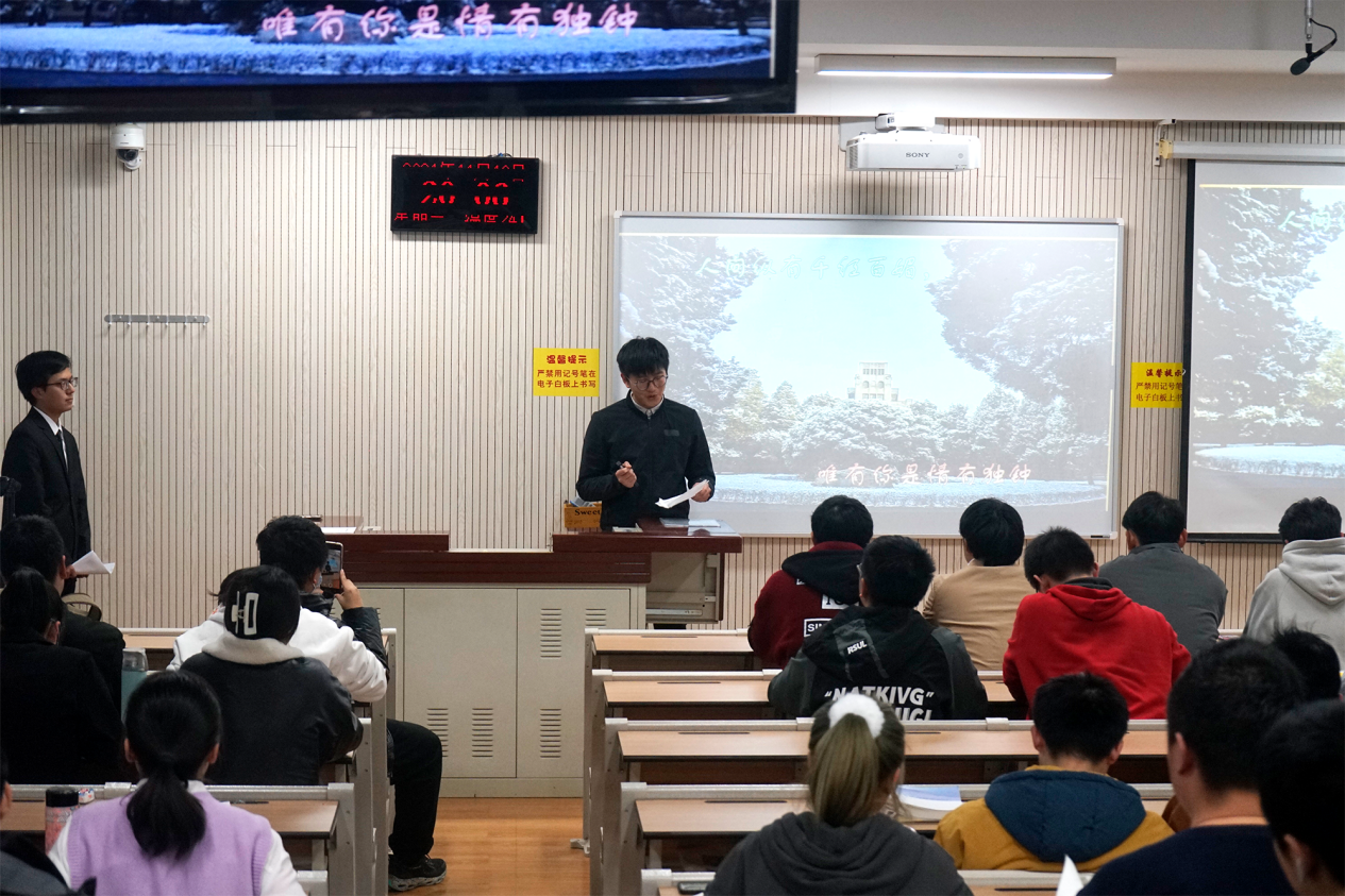 为了进一步增强同学们对西农精神的理解和认知,引导学生们讲好西农故事,传承和发扬西农精神,水建学院于11月10日晚在北校区八号教学楼组织召开了主题为“西农精神我传扬”的演讲比赛。本次活动有多位选手参加,同时邀请了辅导员郝彦昕老师、赵晨雪老师,以及杨文宇、费宇星和陈延旭三位主席团成员担任本次活动评委。