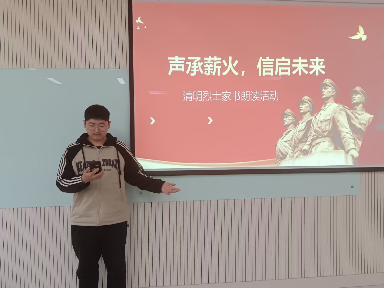 为缅怀先烈,传承红色精神,引领西农学子体悟家国情怀,2025年4月5日,a小说 阳光团工委水建支部在八号教学楼成功举办了以“声承薪火,信启新程”为主题的革命家书朗诵会。