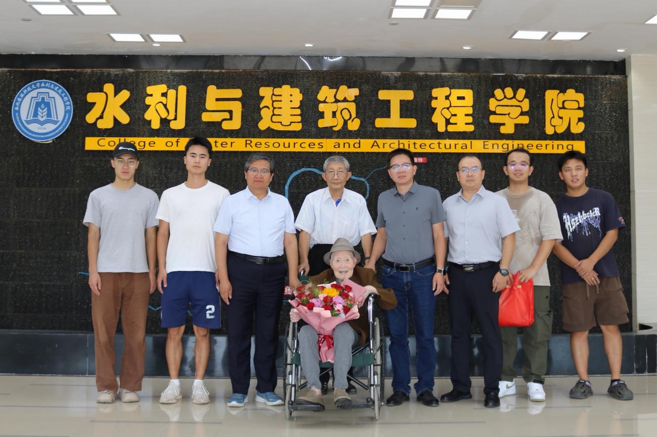 接下来,熊老走进农水专业研究生学习室。看到这些“重徒孙”们正在专注学问,老人眼中闪烁出欣慰的光芒,他缓缓讲述自己求学时的艰辛与不易,勉励青年学生要珍惜当下、努力奋进。虽言语不多,但那紧握的双手和专注倾听的姿态,无声传递着跨越三代的成长期许和对水利事业的炽热情怀。