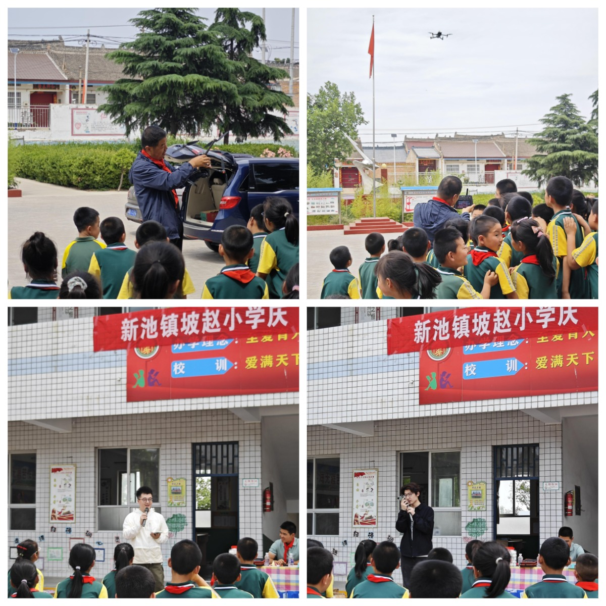 随后,学院教师杨江涛开展了无人机科普讲堂及表演,他深入浅出的介绍了无人机的原理、结构和应用,而随着无人机飞向天空,孩子们对科技的兴趣被点燃,更在他们心中种下了探索未知、追求梦想的种子。活动最后,学院学生代表李昇、孙昊博献唱歌曲,孩子们挥起手臂,为捐赠活动谱写了最美旋律。