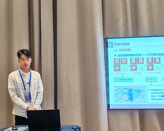 本次学术论坛聚焦新时代背景下环境岩土力学与工程领域的最新研究成果、前沿技术以及实践经验,旨在为从事环境岩土力学与工程领域的专家学者、研究机构开展深入研讨提供平台。论坛共设置1个主会场和3个分会场,专家学者围绕生物建造、填埋场灾变机理及安全防范、环境土界面力学研究、工程渣土改良回填、微生物加固、粗粒土破碎演化等,从多方面多角度进行了深入讨论,充分交流了环境岩土力学与工程领域的最新研究进展。孟敏强副教授在分会场二作了“形态效应对粗粒土破碎演化规律的影响研究”学术报告,博士研究生庞帅在分会场三作了“延性地聚物力学行为与破坏机理研究”学术报告。