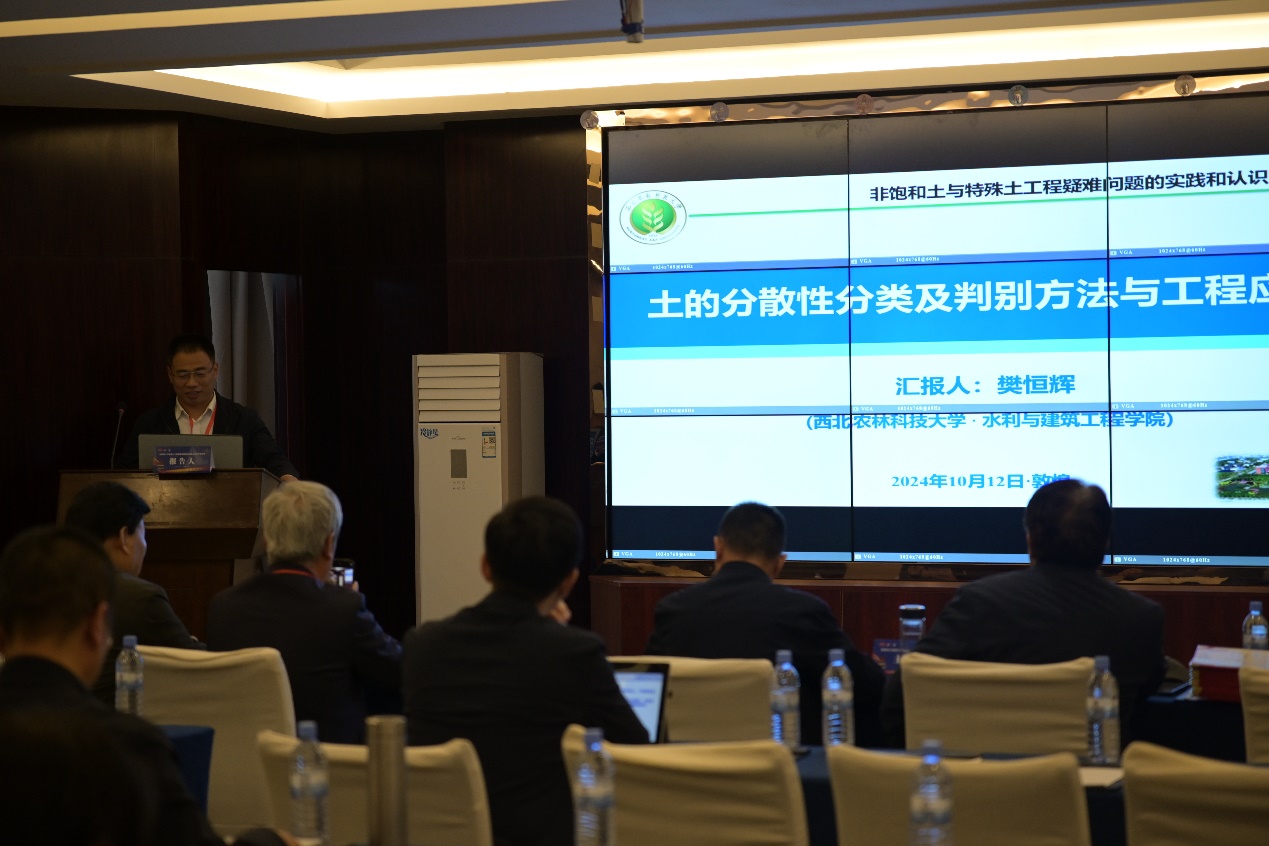 研讨会期间副院长樊恒辉研究员代表a小说 分别在专委会工作会议、大会闭幕式上就a小说 明年承办的“第四届全国非饱和土与特殊土力学及工程学术研讨会”的筹备情况进行了汇报,并正式发布会议一号通知,确定会议举办时间为2025年7月18日-7月20日。此外,樊恒辉研究员在学术交流环节做了题为“土的分散性分类与判别方法及工程应用”的特邀报告。