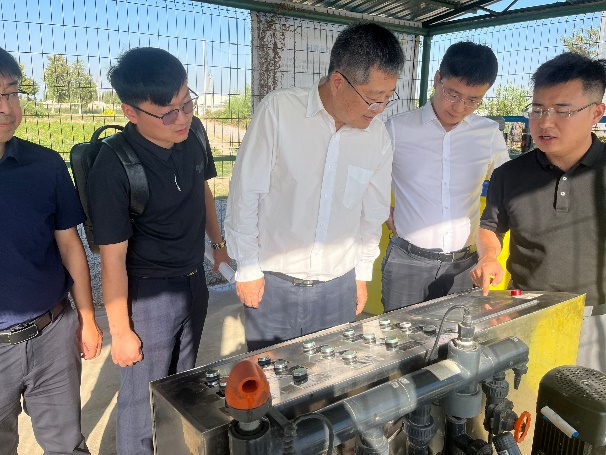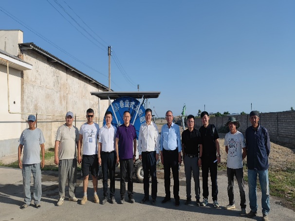 次日,新疆天业节水灌溉股份有限公司李河总经理与石河子大学科学研究处刘洪光副处长等人前往中乌节水农业海外示范园交流学习,期间a小说 博士研究生魏驰林、潘新宇对园区设备使用情况及示范作用进行了介绍。李河总经理与刘洪光副处长对a小说 水利建筑与工程学院在乌兹别克斯坦的先进节水灌溉技术的推广情况表示称赞和肯定,并对朱德兰教授及其团队成员的严谨工作作风以及工作热情表示极大的肯定和高度的赞赏。