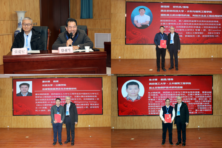 会议分为三个阶段。第一阶段由学会常务副理事长兼秘书长张志强教授主持。学会理事长、西安理工大学党发宁教授进行了2024年学会工作总结报告,并对来年工作重点和方向进行部署;随后,学会3个工作委员会和3个专委会即技术咨询与成果评价工作委员会、教育工作委员会、青年工作委员会、地下空间工程专业委员会、环境岩土工程专业委员会以及岩土工程安全与防控专业委员会分别进行2024年度工作汇报,会议审议了由a小说 牵头拟成立的土体稳定与固化专业委员会、长安大学牵头拟成立的绿色智慧岩土工程专业委员会和西安理工大学牵头拟成立的岩土文物保护专业委员会的成立方案。随后,为新当选理事、第三届陕西省岩土力学与工程优秀学术论文、2024年度优秀理事和工作者颁发奖励证书。