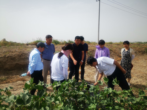 8月7日—8月9日期间,胡笑涛一行在新疆农垦科学院研究员、a小说 学术院长、中国工程院尹飞虎院士带领下,赴新疆生产建设兵团第三师图木舒克市进行考察,与三师农业科学研究所相关专家领导一起参观了尹院士团队正在开展的设施冬枣喷淋控温、棉花暗管排盐与棉花水肥一体化智能调控等试验示范区、以及农科所开展的棉花品种筛选、干播湿出试验示范区,与三师科技局和农业科学研究所进行了座谈,刘斌局长介绍了三师产业发展、项目合作、科技需求等情况,与会人员围绕依托院士工作室进一步加强校地合作进行了充分讨论与交流,并就项目申报达成了初步意向。学术院长尹院士要求学院认真落实合作意向,积极走出去,寻求与地方合作,确保科研成果能够落地见效,切实为包括新疆兵团在内的地方经济建设服务。