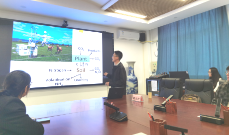 梁力尹研究员主要研究生态系统碳氮循环及相应的温室气体排放,报告围绕新西兰奶牛牧场轮放更新对土壤碳的影响、灌溉对土壤碳的影响、放牧牧场中的氮排放量等三方面进行讲解,不仅介绍了相关模型模拟结果,也展示了其团队在新西兰多地安装的野外仪器实测结果。