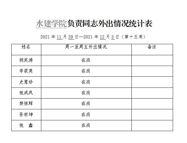 » 水建学院负责同志外出情况统计表(第十五周)