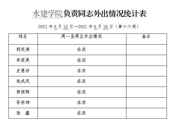 » 水建学院负责同志外出情况统计表(第十六周)