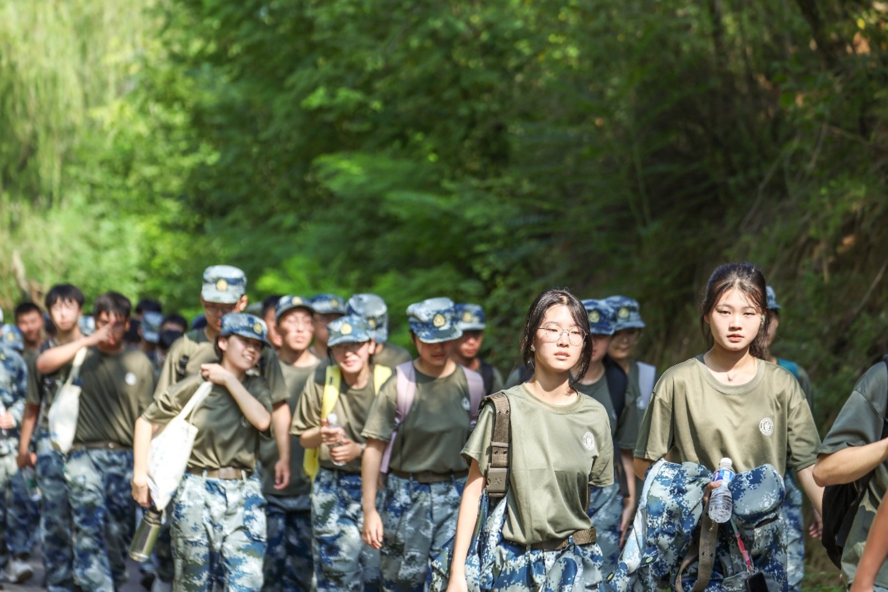 随着总教官命令下达,拉练正式开始。一路上,一排排整齐的队列,一声声嘹亮的军歌声和口号声,一张张昂扬向上的脸庞,无不彰显着同学们顽强的意志和良好的组织纪律。拉练过程中,面对繁重的体力消耗,同学们没有丝毫松懈。在教官和辅导员老师的有序指导下,即使是不同地形中,他们始终保持整齐的队列和步伐。在行进途中,同学们进行了烟雾障碍和防空警报演练,在教官和辅导员老师的命令下,同学们动作迅捷、配合默契,快速有序地完成任务,展现出良好的军事素养与应急能力。