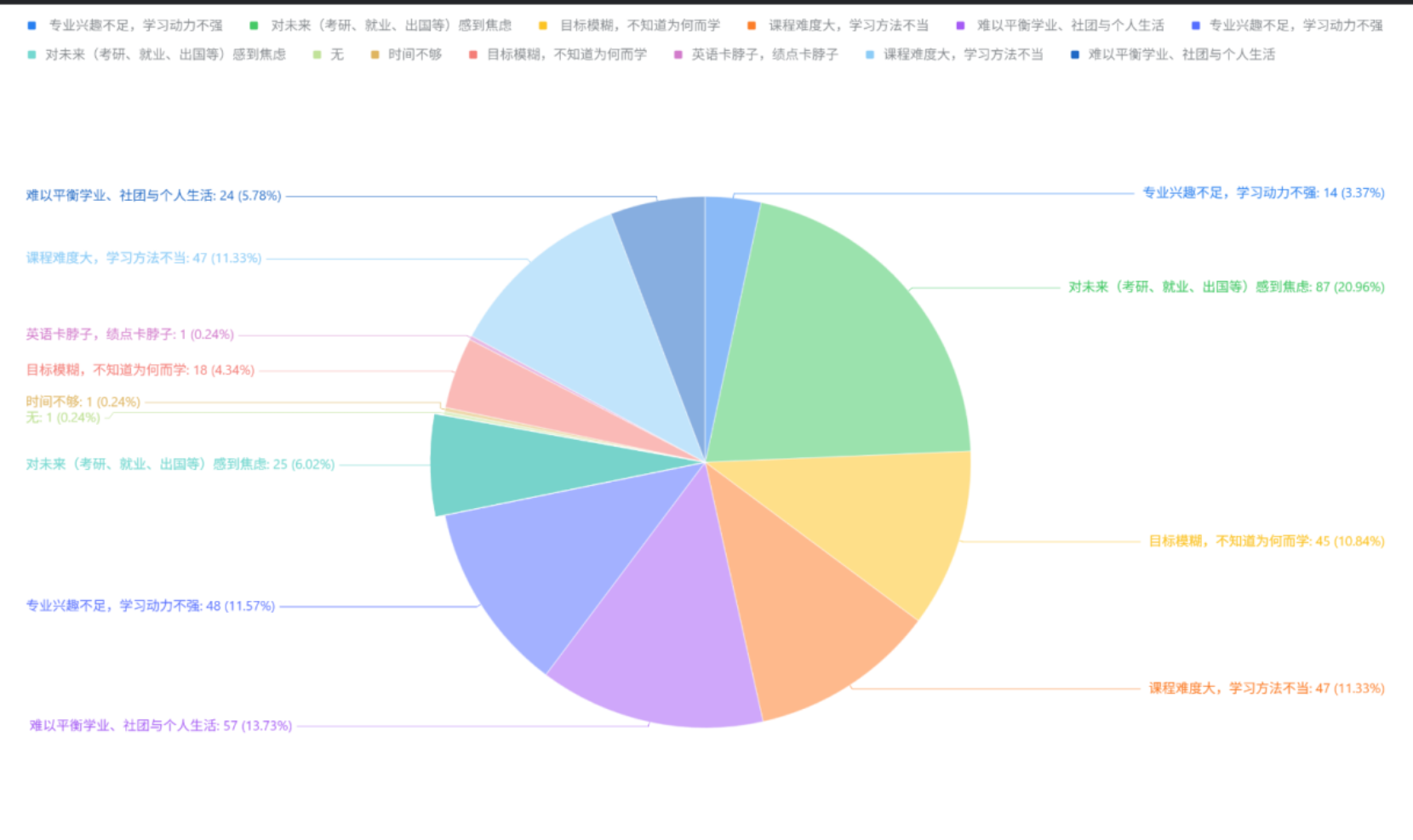 活动前期,社团在 QQ 群、学院联络群等多渠道发布报名通知,报名人数迅速达到预设上限。问卷设有“年级目标”“时间分配”、“方法困惑”等板块,并开放填空区征集自由建议。回收的问卷中,低年级同学普遍追问“怎样快速找到适合自身的学习节奏”,高年级同学则更关注“如何平衡考研复习与毕业设计”;不少同学还写下“希望看到同专业学长学姐的真实课表”、“想借鉴双学位选课顺序”等具体愿望。一条条具体而真实的困惑被原汁原味地整理出来,为后续朋辈分享提供了精准议题。